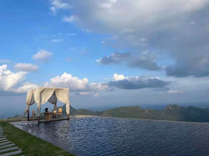 朴语野奢酒店·独山,坐落于黔南布依族苗族自治州独山县百泉镇旗山村交必组的云山之巅。百亩山巅,只藏有19间荒野美墅。每一栋入户和观景都互不干扰,隐于山落。为了更好抵达,还可选择直升机接机项目。在这里,除了独乐,还有众乐。朴语野奢悉心打造诸多贴心的配套:咖啡厅、餐厅、书吧、茶室、瑜伽室、冥想空间、火塘、酒肆、手作坊,能让旅居的人彻底放松,在山间绝壁唤醒一段浪漫、自由、舒适的精神回归。